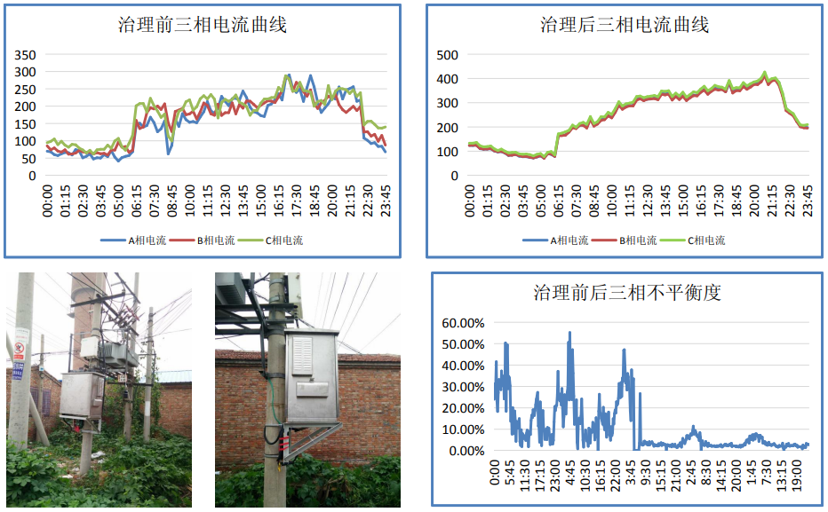 山東濟南市章丘區(qū)某配電臺區(qū)三相不平衡問題突出,存在末端低電壓問題,人工治理后沒多久又出現不平衡的現象,給運維造成極大的不便,經過治理后三相不平衡問題得到解決。