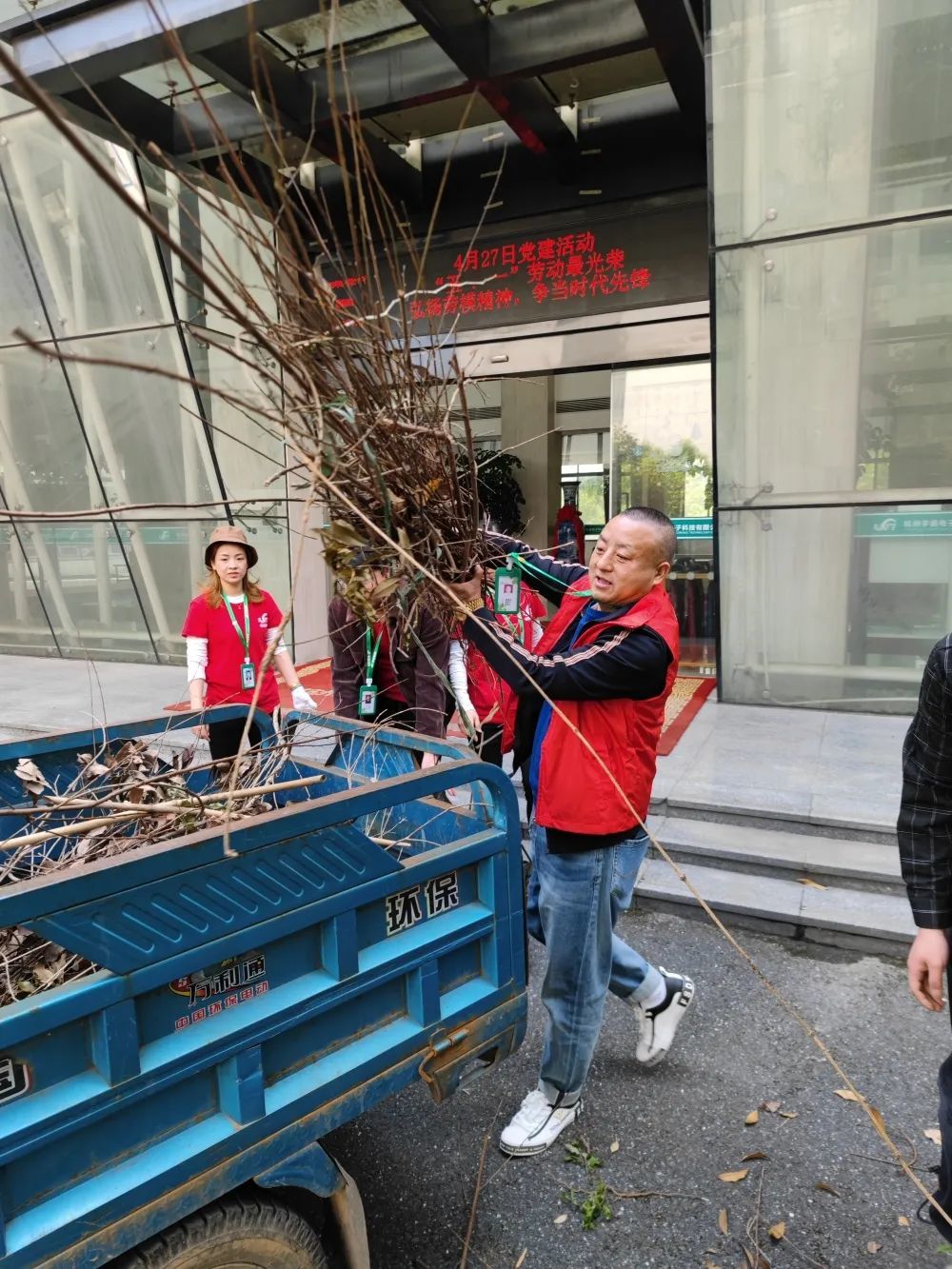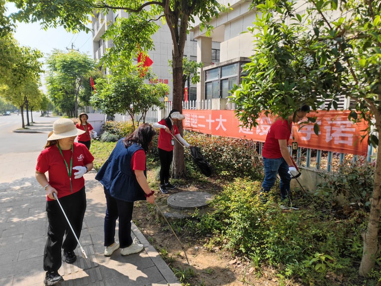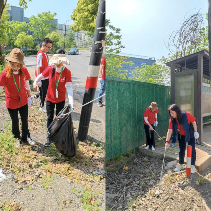 在對(duì)園區(qū)進(jìn)行全方位清掃后,黨支部成員們帶上清潔工具,走出園區(qū),對(duì)周邊的環(huán)境進(jìn)行清潔。